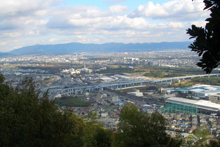 天王山から見下ろす山崎決戦の地。奥は京都市街。