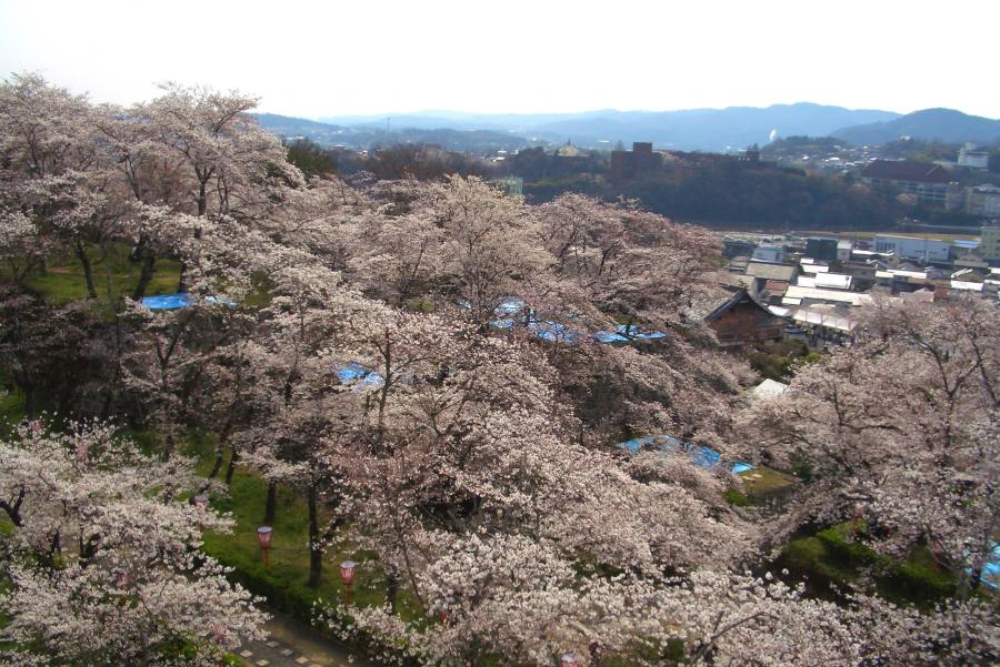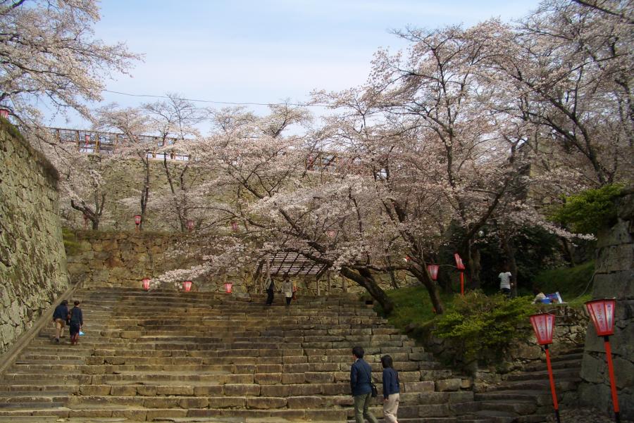 現在、津山城では備中櫓が復元再建されており、今後も少しずつ建物の復元が進んでゆくかもしれません。津山城には桜が約五千本植えられており、西日本有数の桜の名所として知られています。桜の季節となると大勢の見物客で溢れかえりますが、ここの桜と石垣は一見の価値があります。
