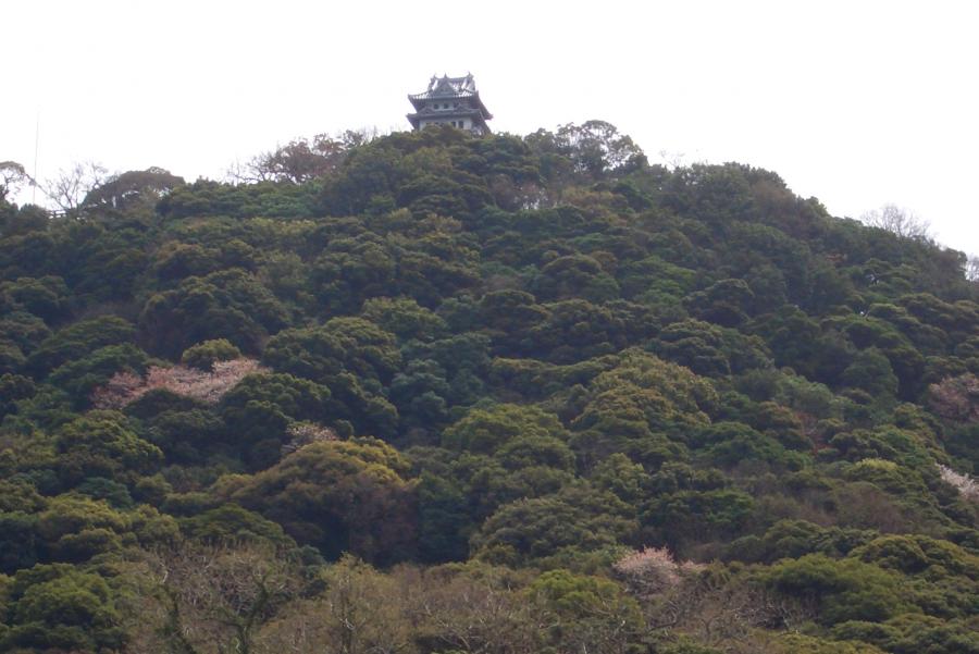 ↑麓から眺めた洲本城