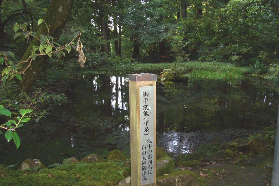 この御手洗池で、泰澄大師は白山の神の信託を受け、神を祭る社を建てる事を決したそうです。池の近くには、石組みが残り、建物が建てられていた形跡がありました。かつてはこの池のほとりで、僧侶達が祈りを捧げていたのでしょうか。