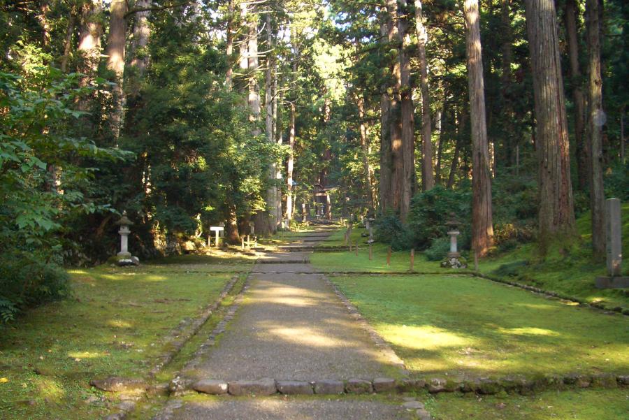 かつては左右に建物が立ち並んでおり、大勢の人々の往来があったのでしょう。文治3年(1187年)、源義経が兄、頼朝の手から逃れて奥州に向かう途中、この平泉寺に立ち寄ったと伝えられています。