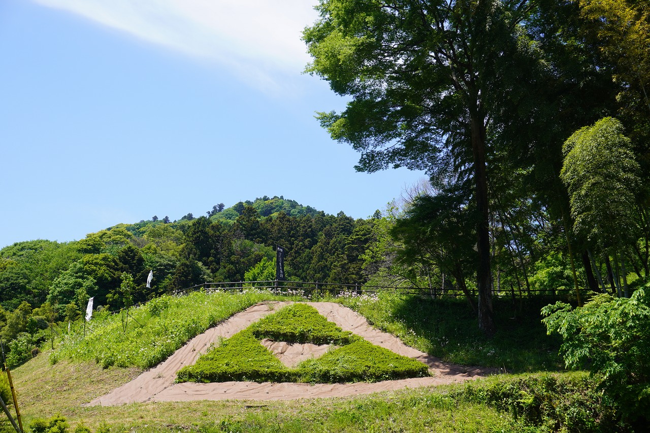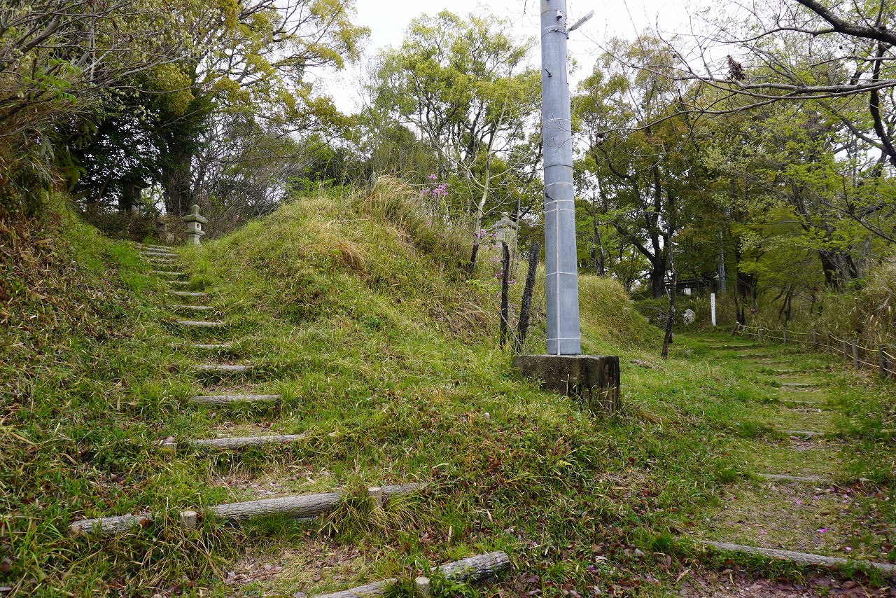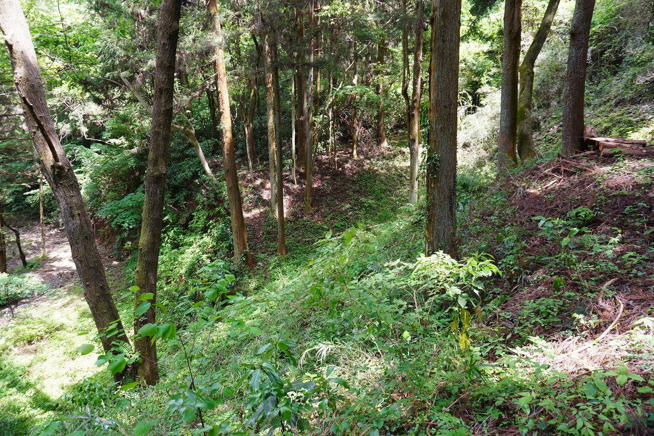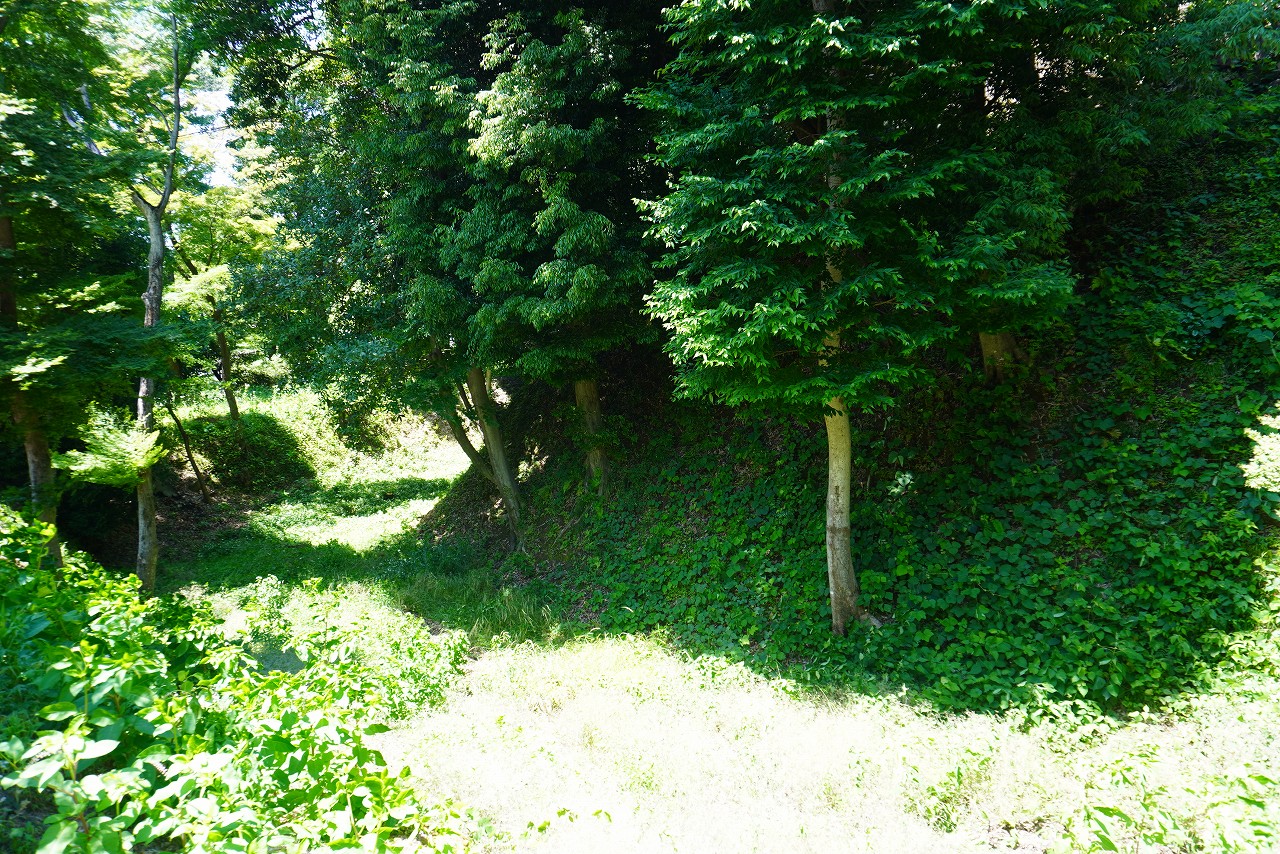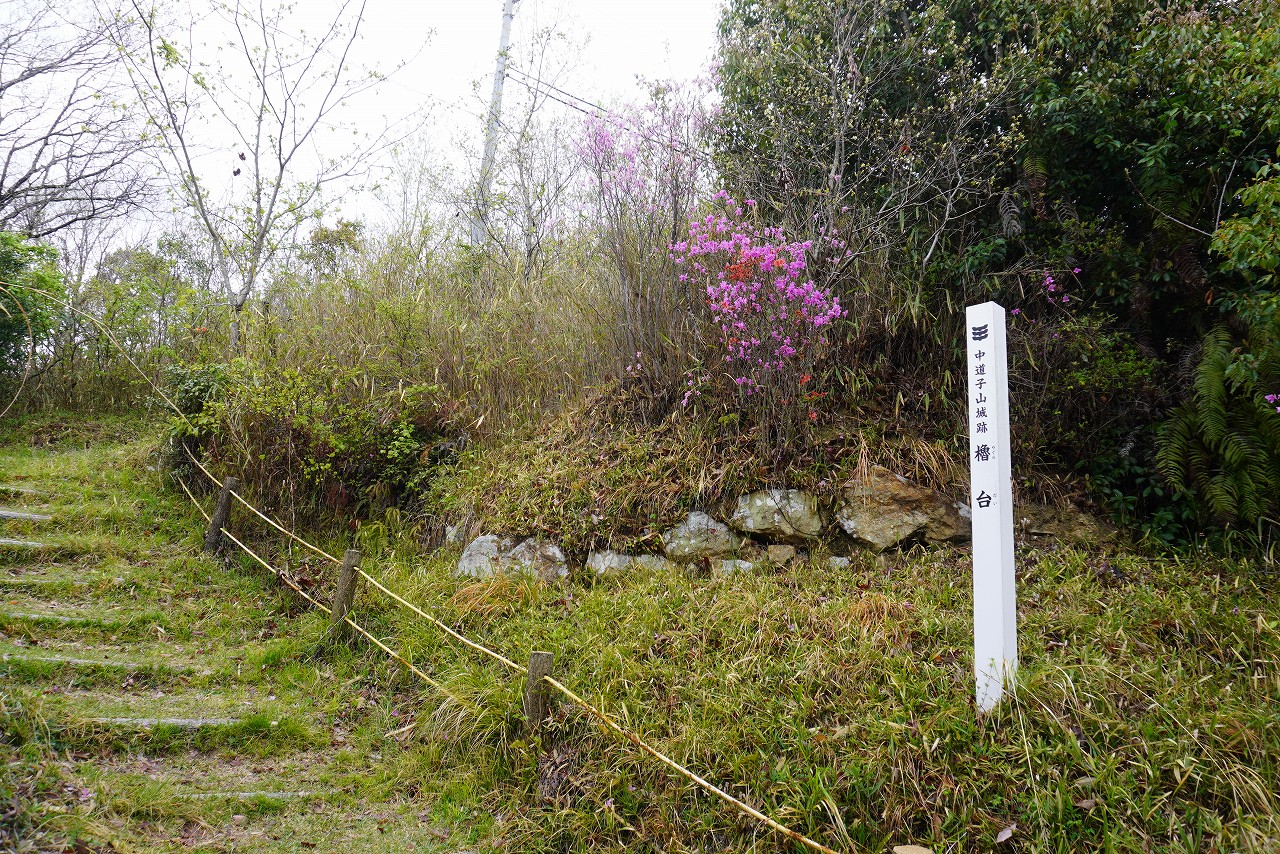 中道子山城は、土塁、空堀が残る典型的な中世山城です。遺構は良好で、眺めもなかなか良いです。