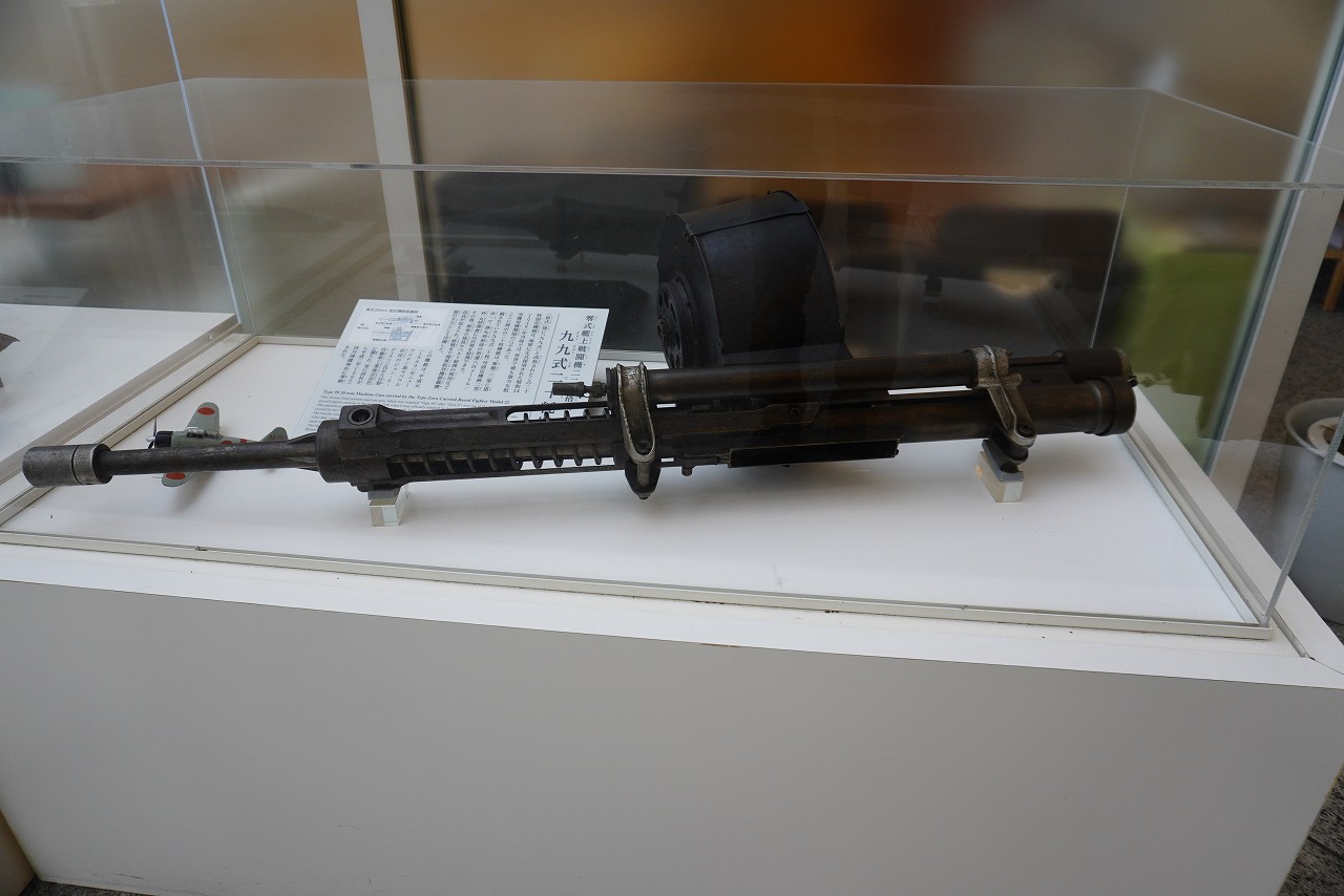 日本海軍を代表する戦闘機、零戦に搭載されていた機銃です。零戦二十二型に搭載されていたと説明にあります。航空機銃としては破壊力は高いものの、銃身が短い事から弾道直進性と命中率は低く、至近距離から射撃する必要がありました。後期型の長砲身の二号銃は、上記の問題が解決されています。