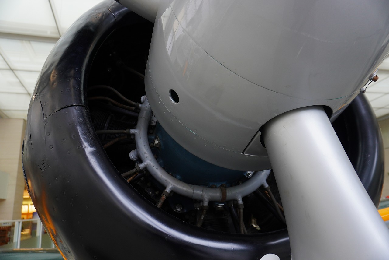 零戦の空冷エンジン、栄の構造の一端が窺えます。当時のレシプロ戦闘機のエンジンは空冷式と液冷式の二種類があって、日本では扱いやすい空冷エンジンが主流でした。空冷エンジンは直径が大きく空気抵抗も大きいという欠点がありましたが、構造が簡単で軽量という利点もありました。