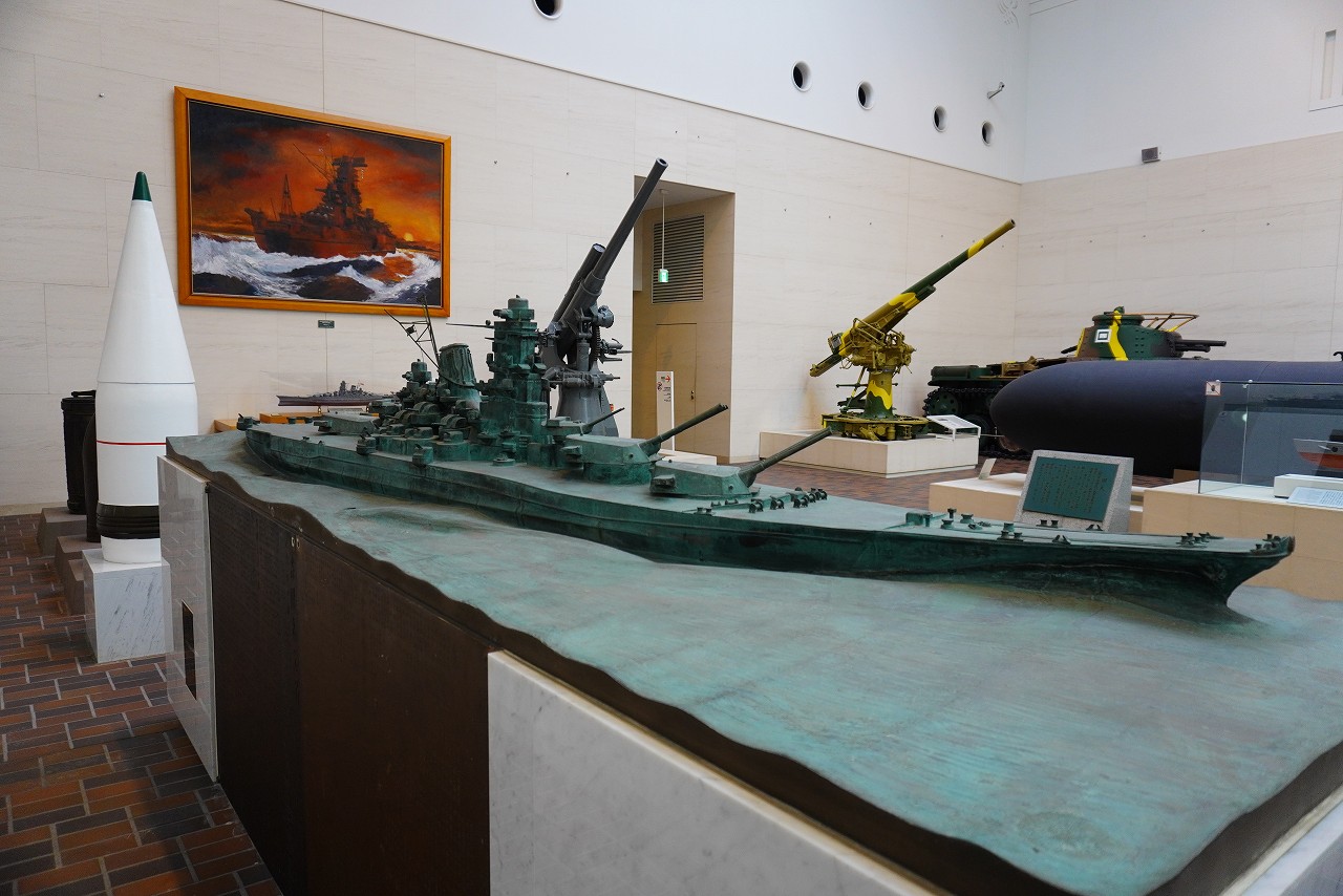後ろには、戦艦武蔵の46cm主砲弾が展示されています。