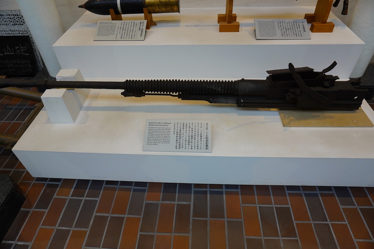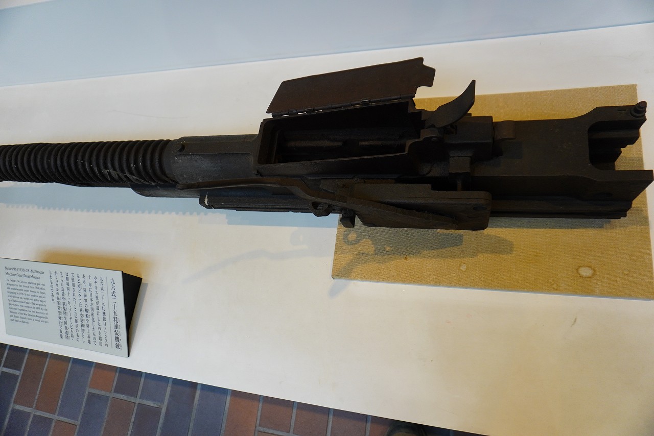 日本海軍の主力対空機銃です。フランスのホチキス製25mm機関砲をライセンス生産したもので、日本海軍のほとんど全ての艦船に搭載されていました。兵器としての信頼性は高かったものの、重防御のアメリカ軍機には威力不足でした。