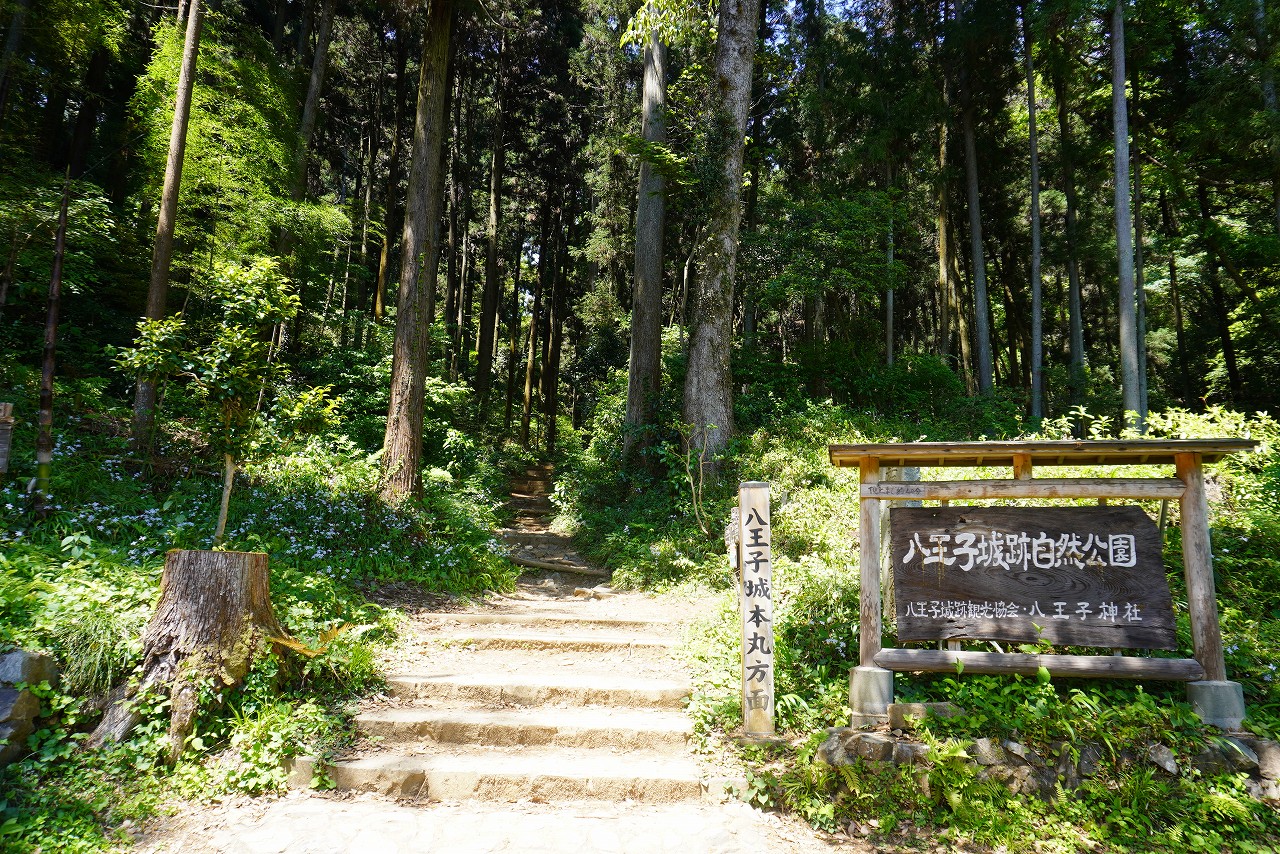 八王子城の麓にあります。この先を進むと城主の居館、御主殿に至ります。