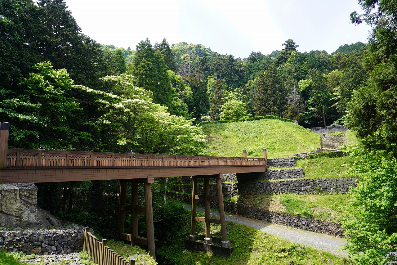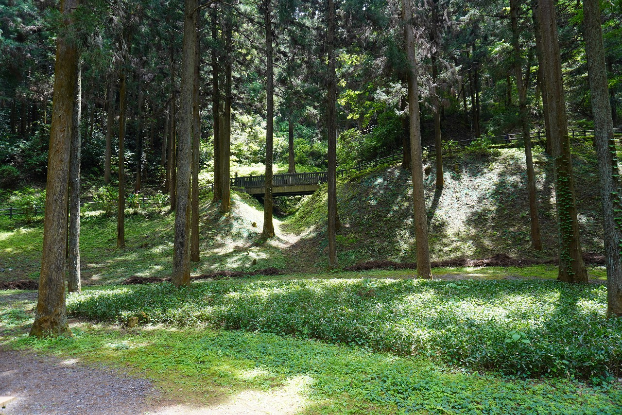 往時には簡単な木橋が架けられていて、御主殿への通路となっていました。緊急時には木橋を壊し、侵入を妨げました。