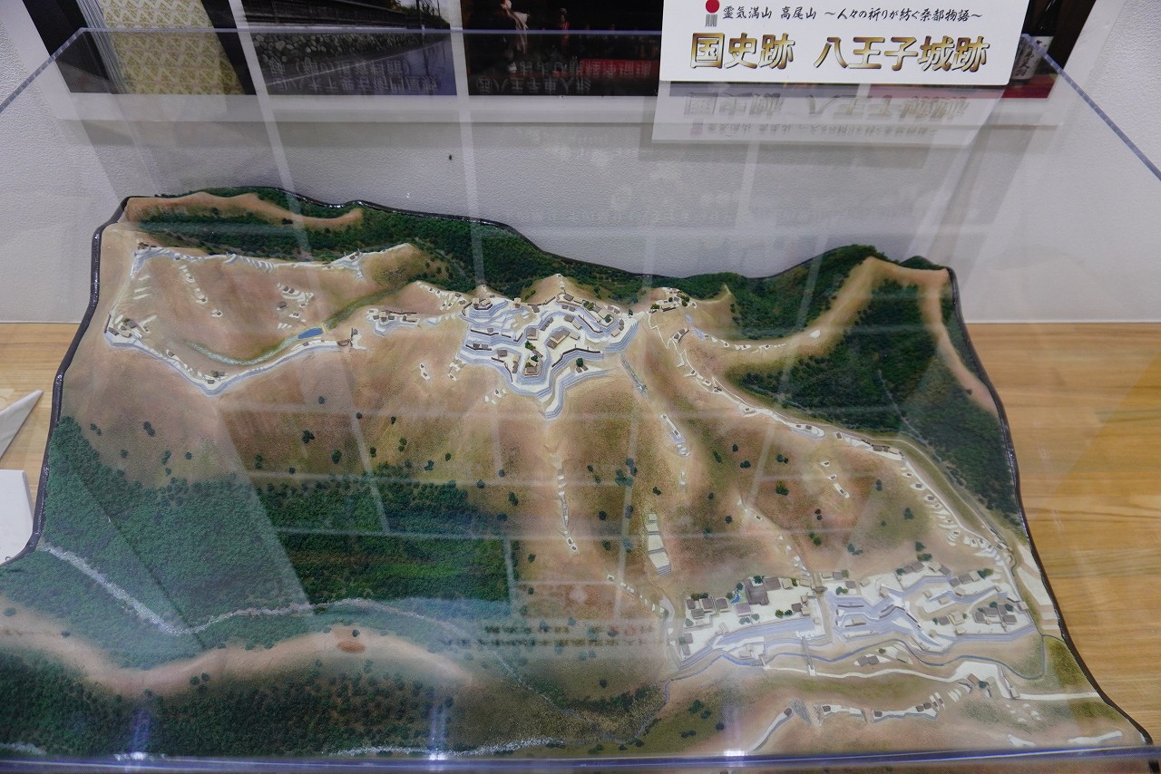 バス停や駐車場もあります。この施設では、映像やパネルで八王子城の歴史の説明が見れます。また、出土品の数々も展示されています。