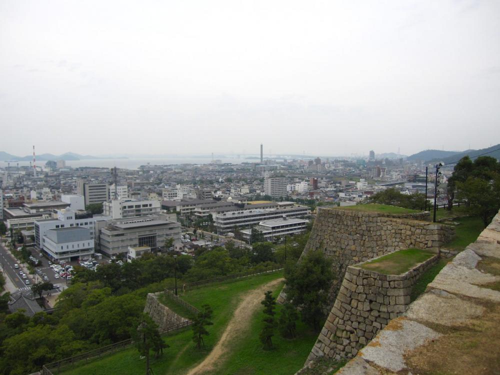 ここからは瀬戸大橋が見えました。この日は霞があって、見晴らしはよくありませんでした。それでも、丸亀城の高石垣はやはり見応えありました。