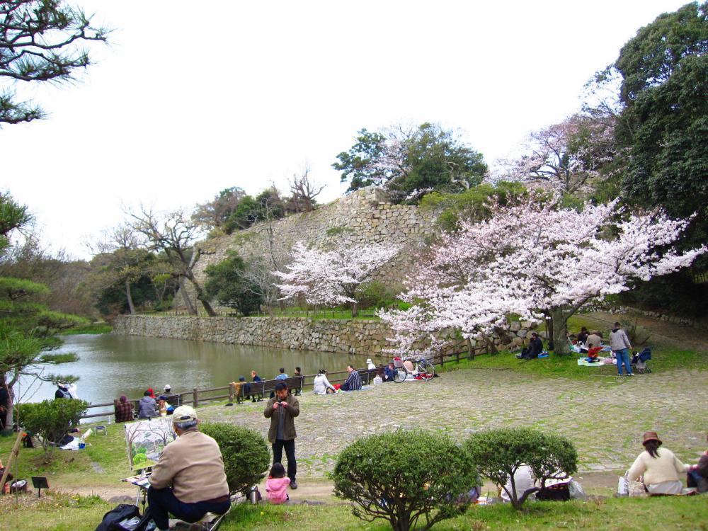 この明石城は、日本の桜の名所、百選にも選ばれている桜の名所であります。私が訪れた日にも、大勢の花見客で賑わっておりました。