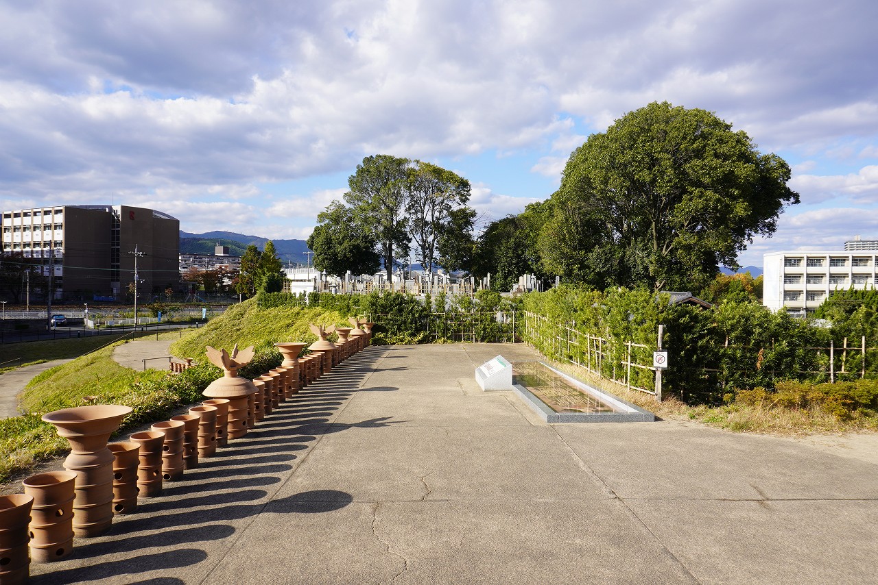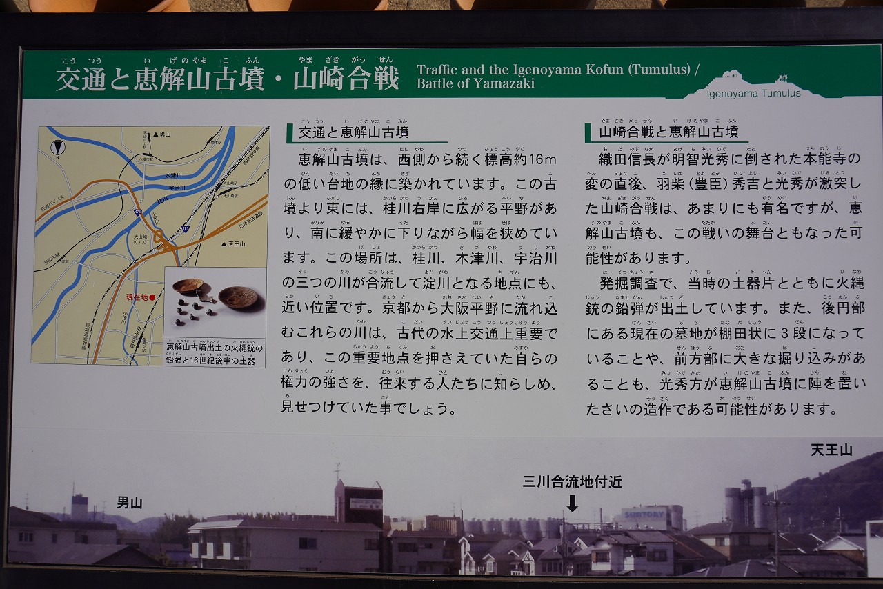 境野一号墳の北側にあります。現代では、こちら恵解山古墳の方が、光秀本陣跡であった可能性が高いと目されています。