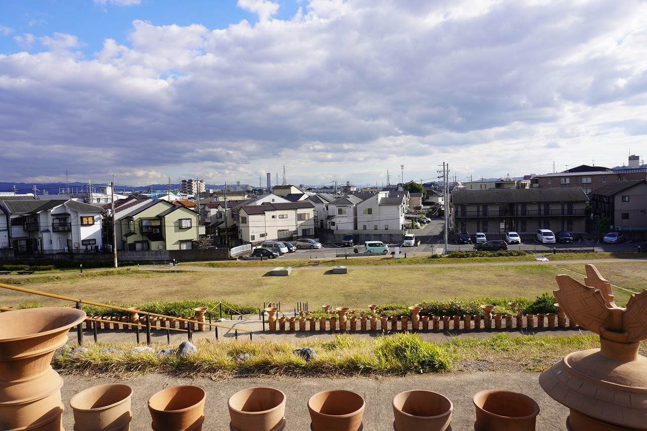 ↑古墳から淀川方面を望む
