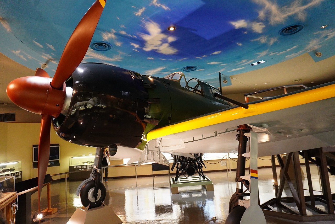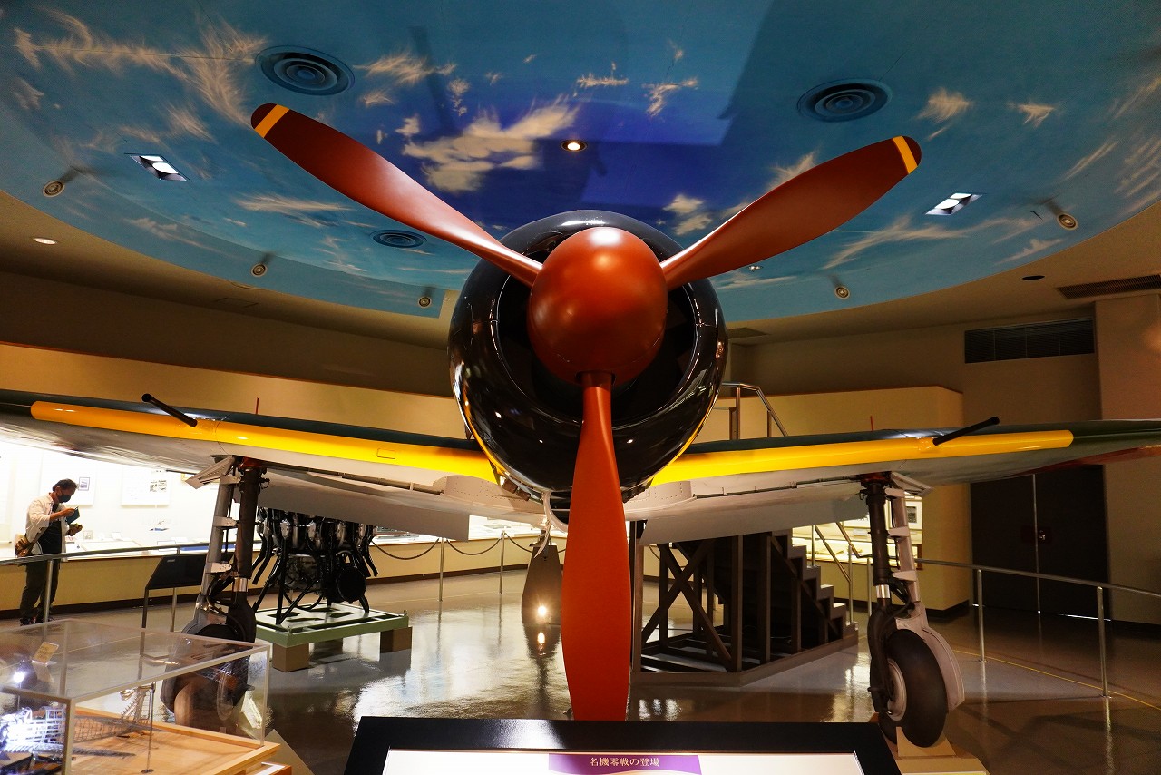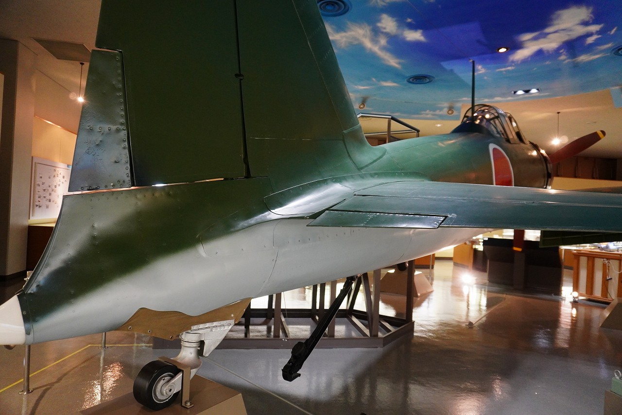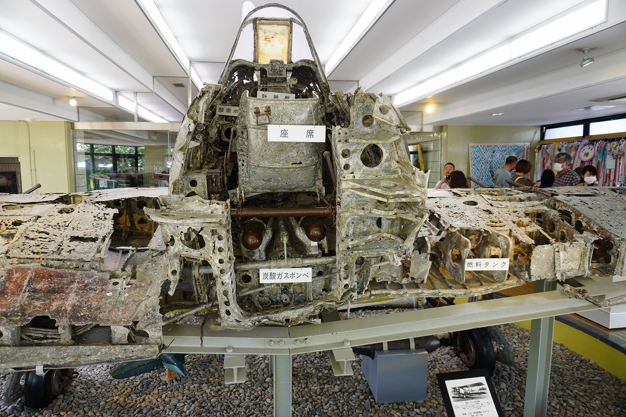零戦の後期型で、速度と武装が強化されています。昭和20年(1945年)5月に鹿児島県、甑島(こしきしま)沖で海没した機体を、昭和55年(1980年)に引き揚げたものです。