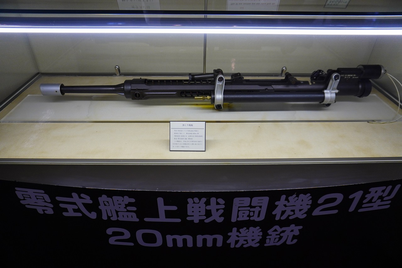 後期型の零戦に搭載された20mm機銃で銃身が長く、見た目にも威力が上がっているのが分かります。