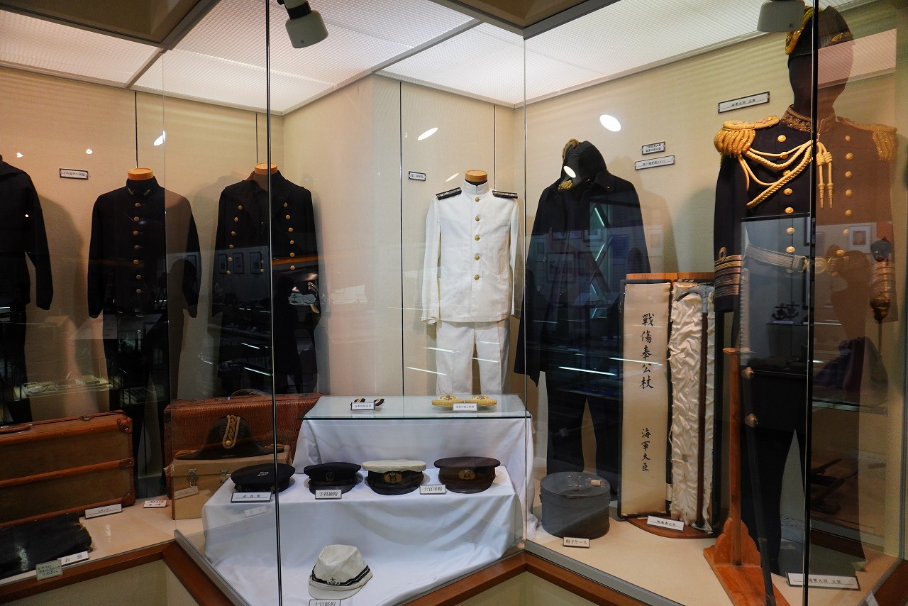 屋外には、海上自衛隊で使用されていた、航空機やヘリコプターが大量に展示されています。屋内も日本海軍の艦艇模型や、零戦の復元機と装備機銃、特攻隊員の遺影と遺書、などなど大量の史料が見られます。特に見入ってしまったのは、昭和18年(1943年)4月、山本五十六大将が戦死した際の搭乗機、一式陸上攻撃機の残骸や、硫黄島守備隊の遺品、銃孔らしき穴の空いた鉄兜や、薬品の瓶などでした。展示史料は撮影不可もありますが、兵器等は撮影可が多かったです。基本的に私が興味あるものを載せていきます。